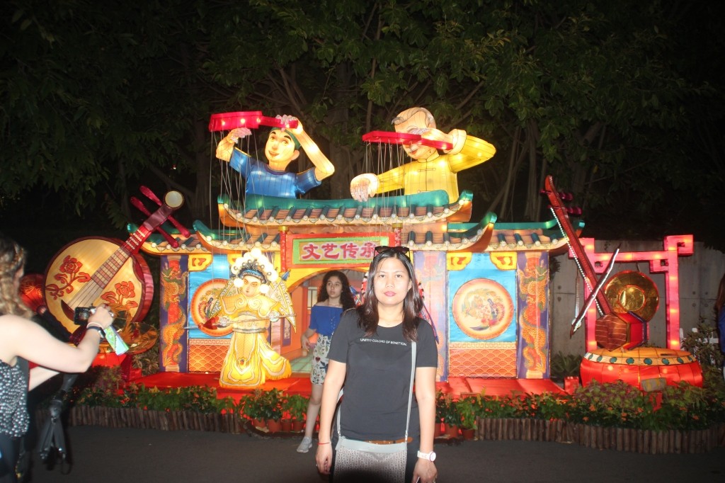 Chinese balloon lanterns hang overhead along the walkway, giving a festive and lively vibe—even in the evening.