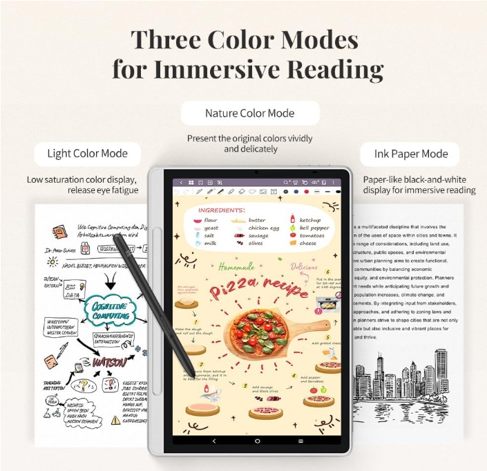 This Android 14 smart note pad features a 10.95” glare-free X-Paper display, 3 color modes, and X3 Pro Pencil 2 with 16,384 pressure levels for ultra-precise handwriting.